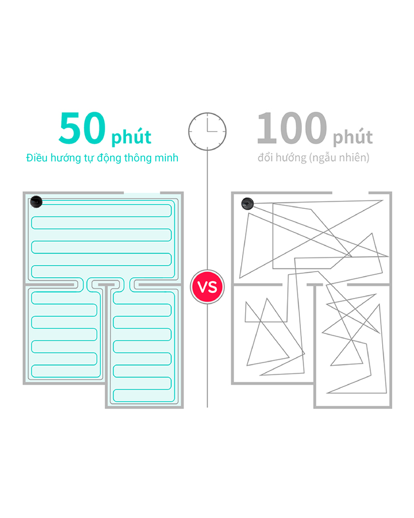 Công nghệ con quay hồi chuyển tiên tiến cho phép tăng gấp đôi hiệu quả khi lau chùi. Hoàn thành một vòng làm sạch chỉ bằng một nửa thời gian so với robot hút bụi thông thường.