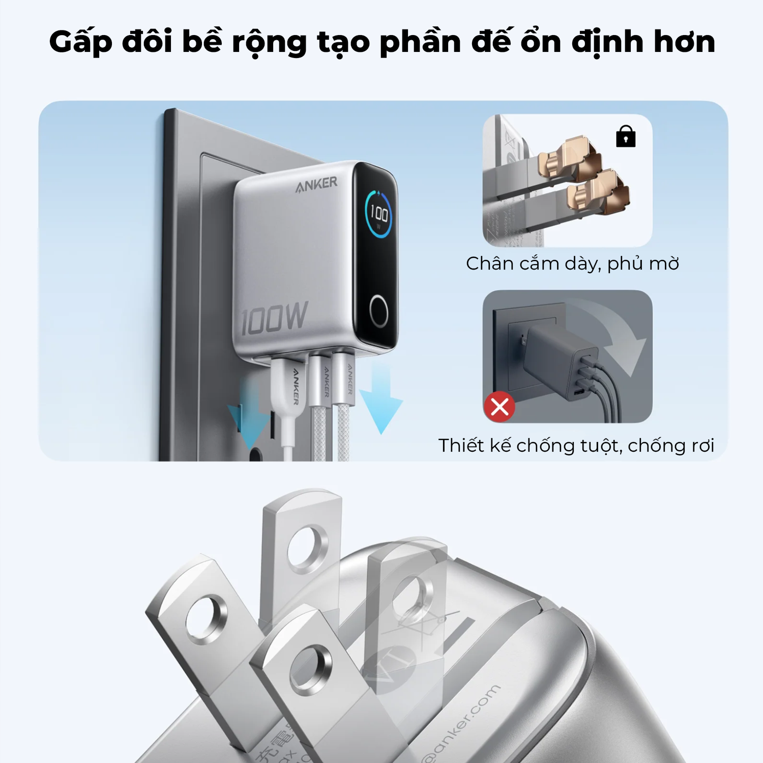 Đế rộng hơn, cắm chắc chắn hơn