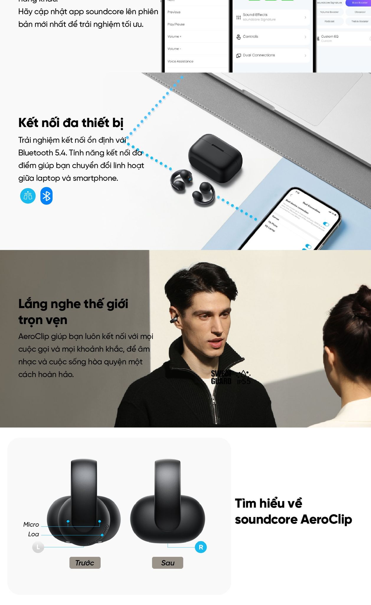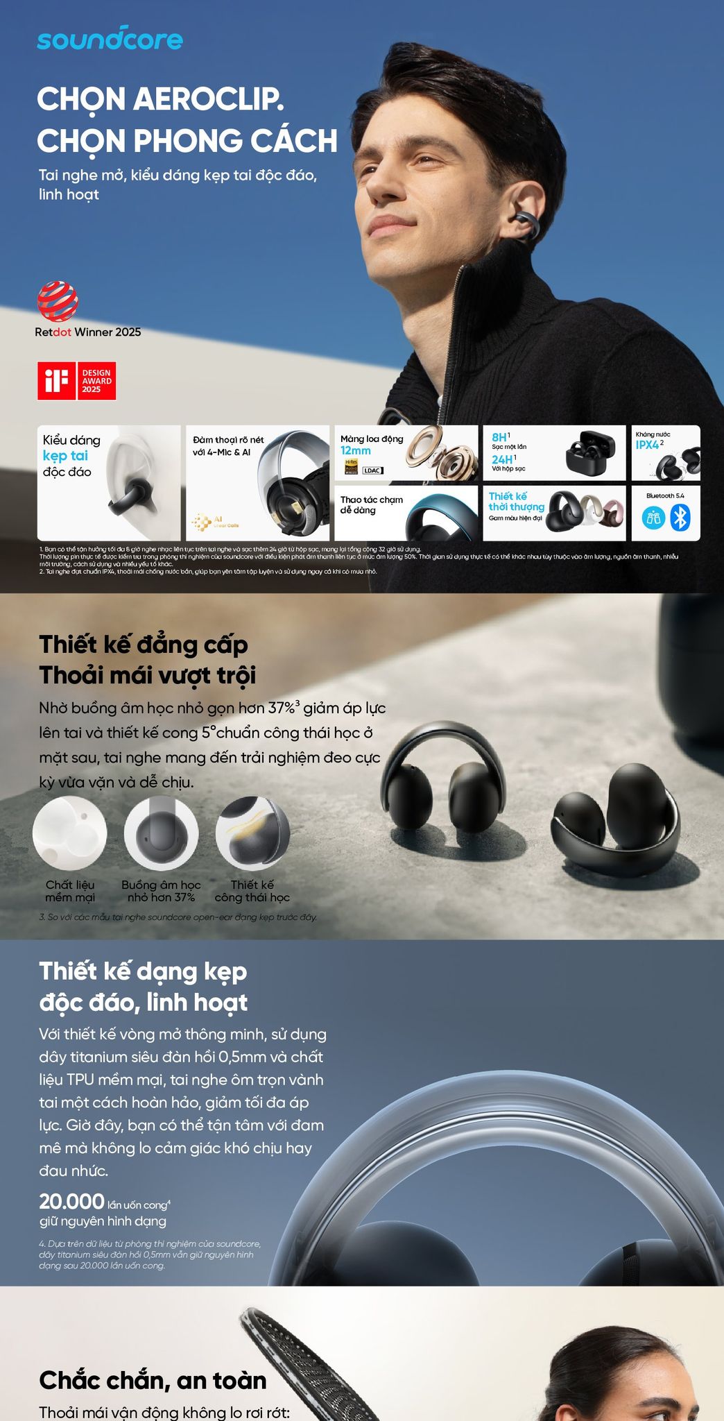 Tai nghe bluetooth Open-Ear soundcore AeroClip